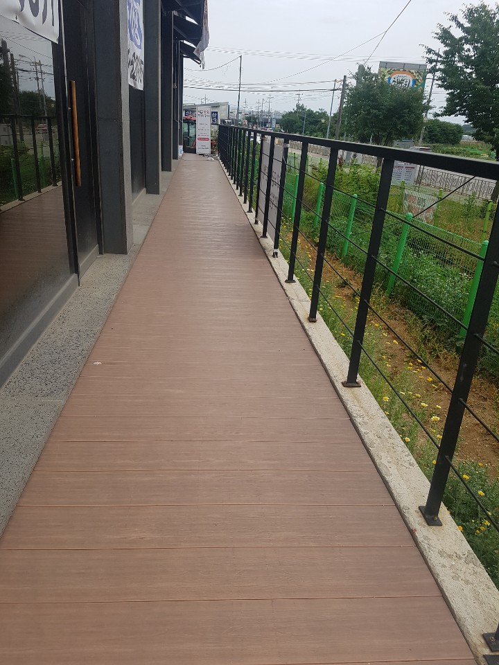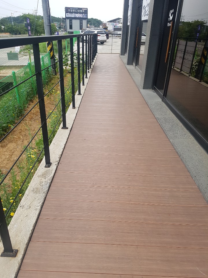 신축상가 테라스에 시공 된 미끄럼방지 유웰합성데크 본문