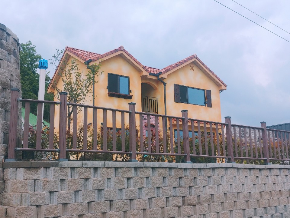 일단 휀스는 합성목재 스타일로 연출을 했습니다.