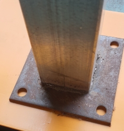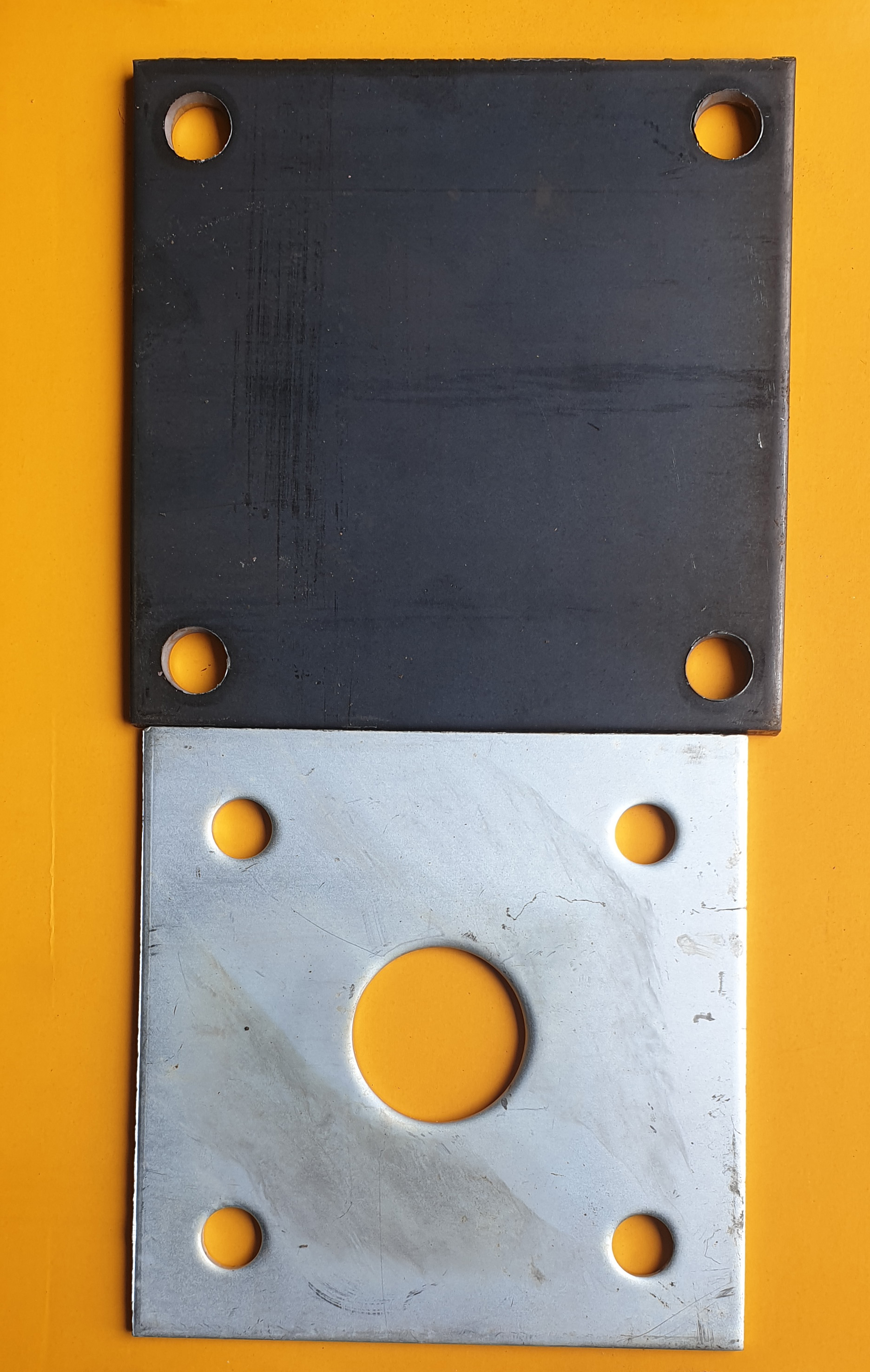 일반적으로 사용하는 베이스 플레이트는 폭150*150mm나 140*140mm를 많이 사용합니다.
