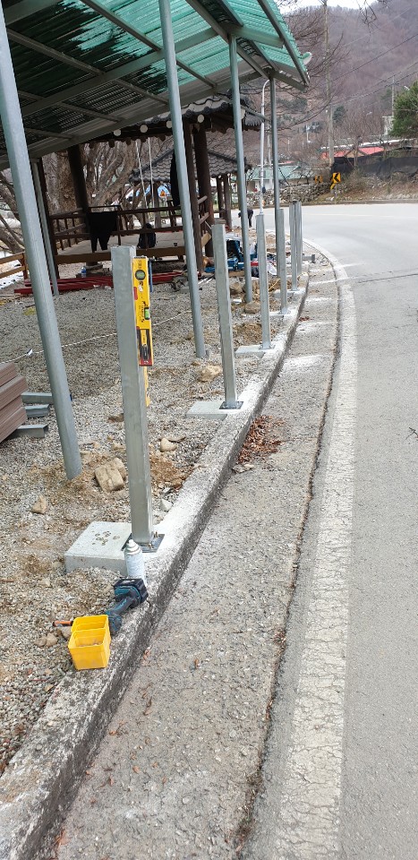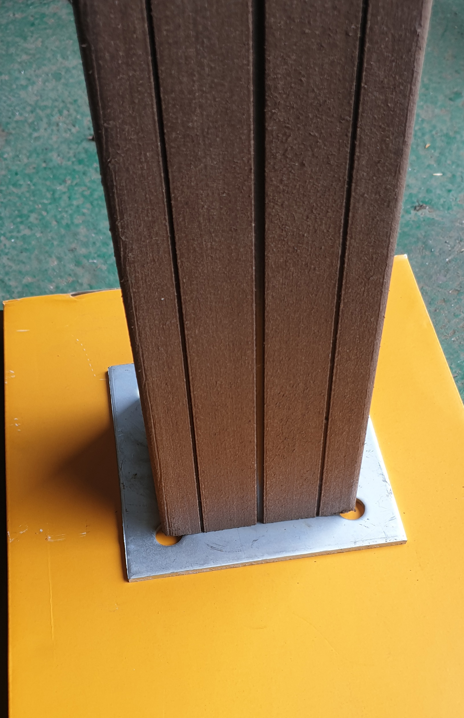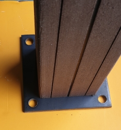 흔히 시중에서 구하는 제품들은 볼트 구멍이 안쪽으로 몰려있으니 각관에 합성목재 기둥을 심으면 볼트위에 걸리는 경우가 대부분입니다.