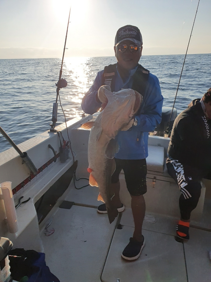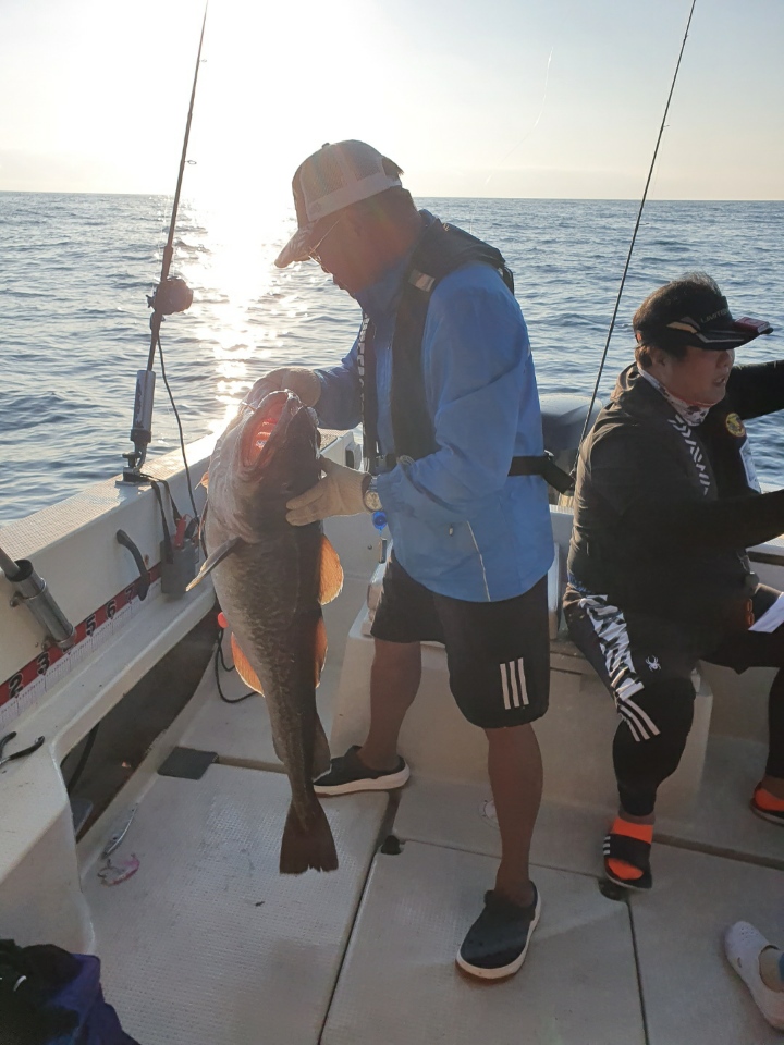 양양 수산항마리나에서 1.2m짜리 대구를 잡았습니다