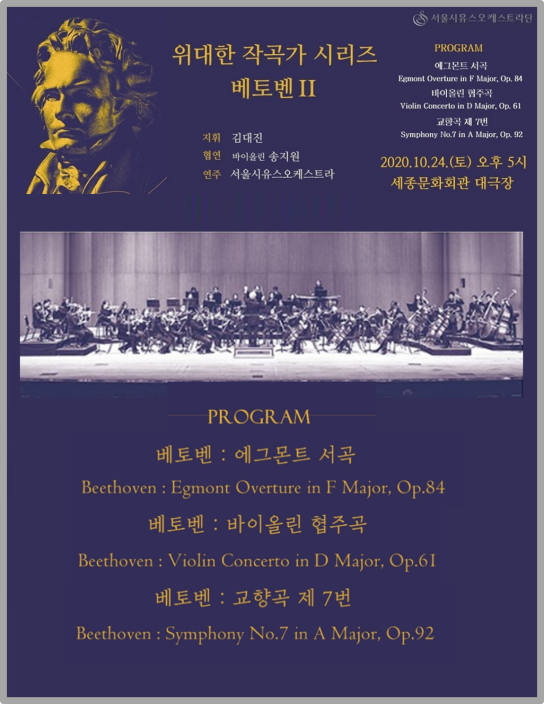 위대한 작곡가 시리즈는 해마다 클래식계의 대표 작곡가를 선정해 풍성하고 다양한 음악을 선보이는클래식 공연입니다. 2014년 ‘차이콥스키’를 시작으로 ‘드보르작’, ‘베토벤’, ‘라흐마니노프’, ‘말러’ 등 클래식 음악계의 위대한 작곡가의 작품을 선보이고 있으며, 2020년 베토벤 탄생 250주년을 맞이하여 베토벤을 올해의 작곡가로 선정하여 그의 음악세계를 한층 더 깊이 있게 살펴봅니다.