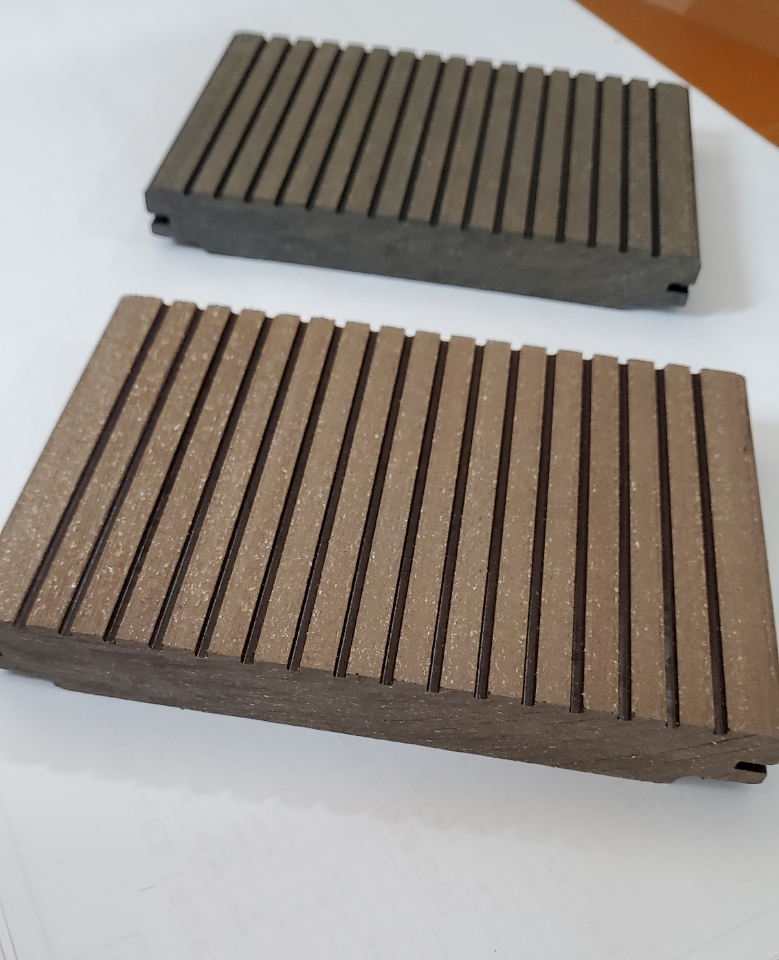기존데크의 원료는 흔히 목분과 플라스틱을 혼합해서 압출하는 방식입니다.