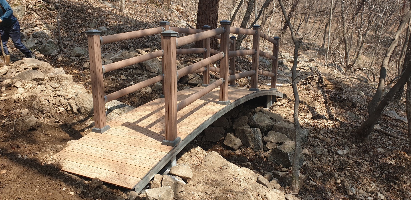 이번에는 등산로 산책코스에 시공된 논슬립 합성데크와 디자인 울타리 휀스를 소개합니다