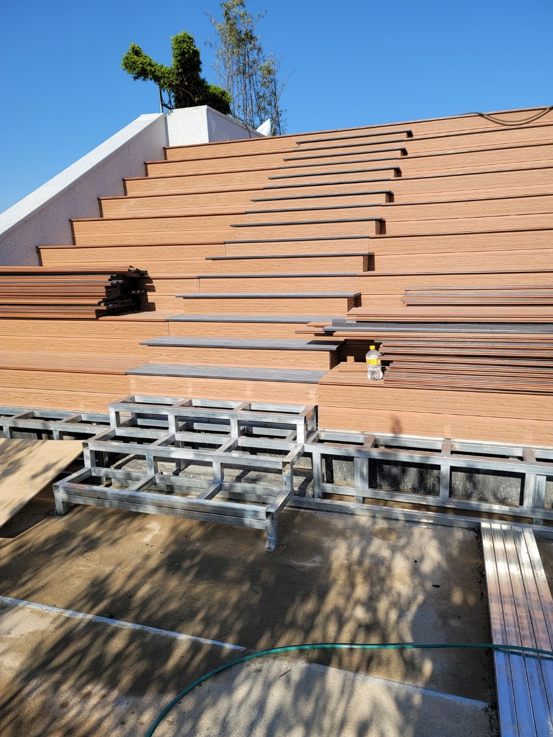 합성데크는 미네랄 (조개가루,돌가루)와 플라스틱을 혼합해서 압출 생산하는 방식인데 합성목재데크 보다 가벼우면서 물속에 담궈 있어도