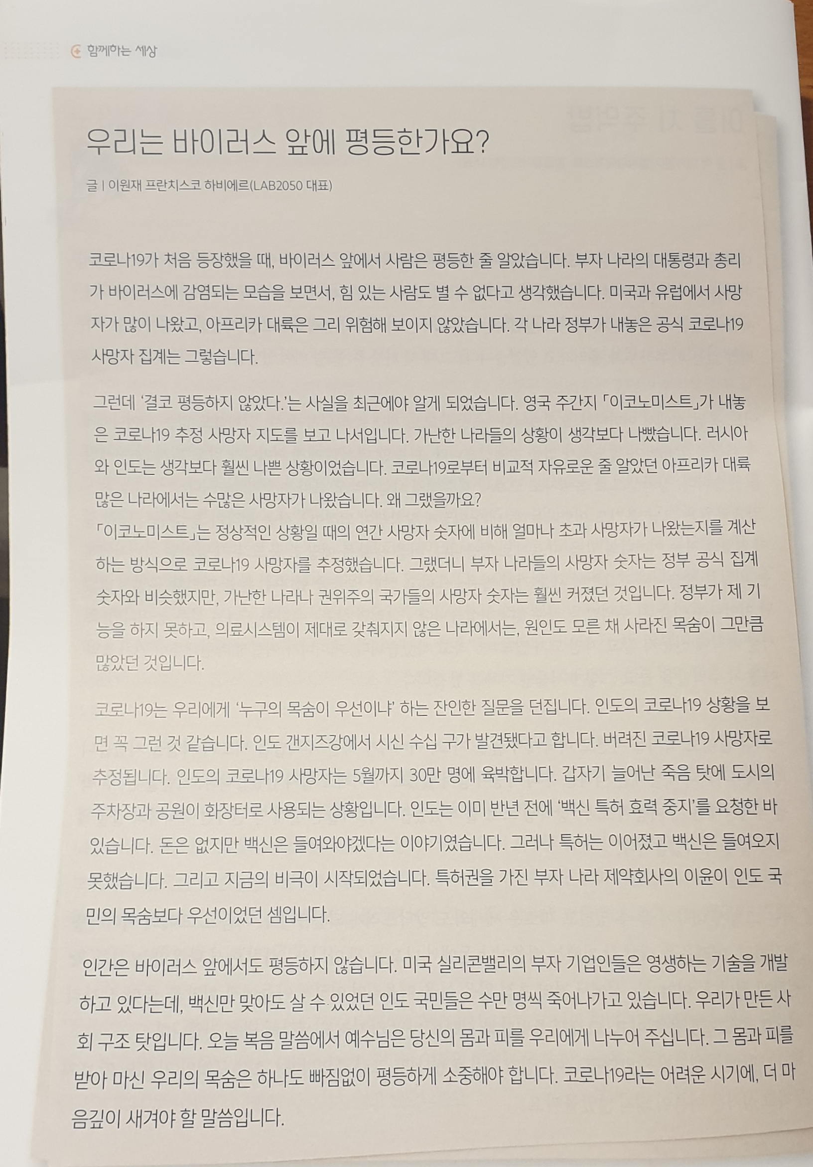 우리는 바이러스 앞에 평등한가? 본문