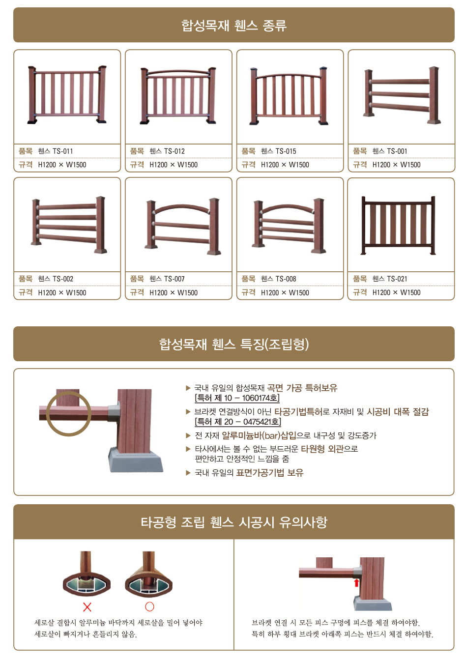 기존 휀스는 합성목재로 만들어서 속주를 사용하는 방법인데