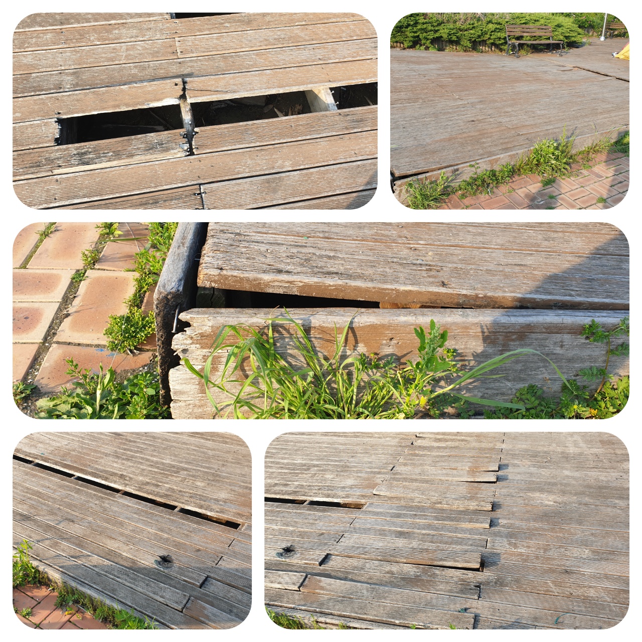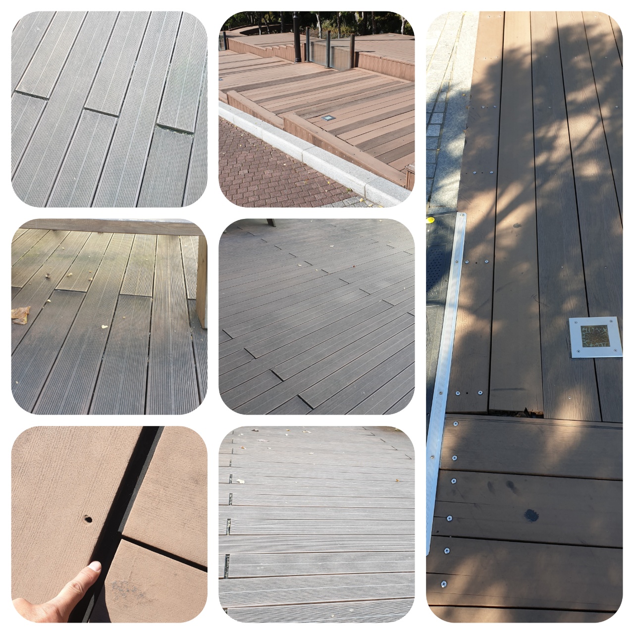 분명 겉보기에는 같은 합성목재데크 인데 시공한지 1년도 안된 상황인데 색이 바래거나 다른 특별한 하자들을 볼 수 있습니다.