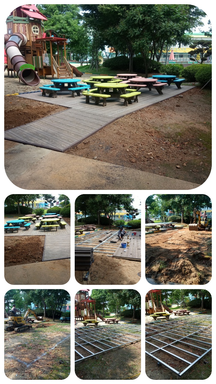 어린이 시설이나 바닷가 수영장 그리고 공원시설등등에는 논슬립합성데크를 추천합니다.