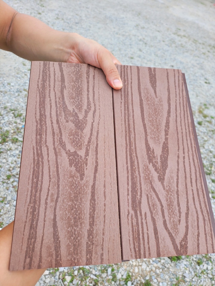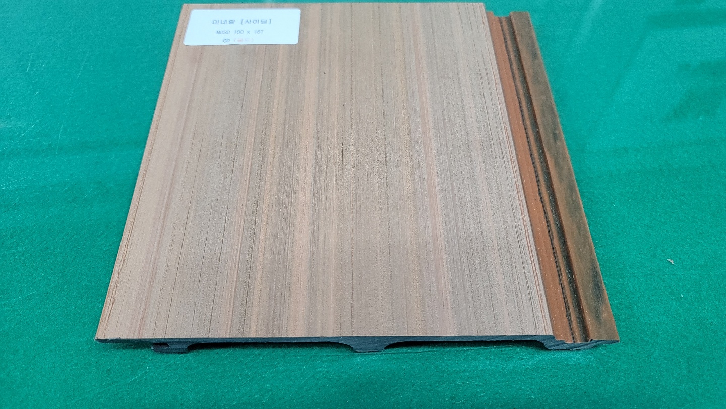 합성목재 사이등을 잘 보면 무늬결을 띄고 있고 얇은 두께라서 시공하기도 편리하게 제작됐습니다.