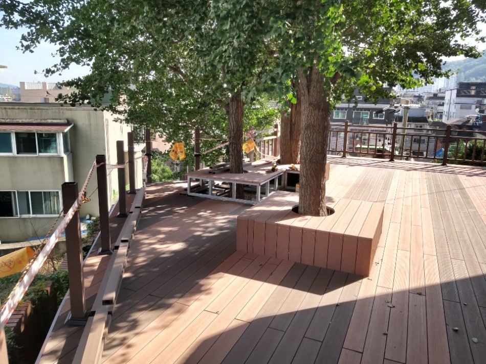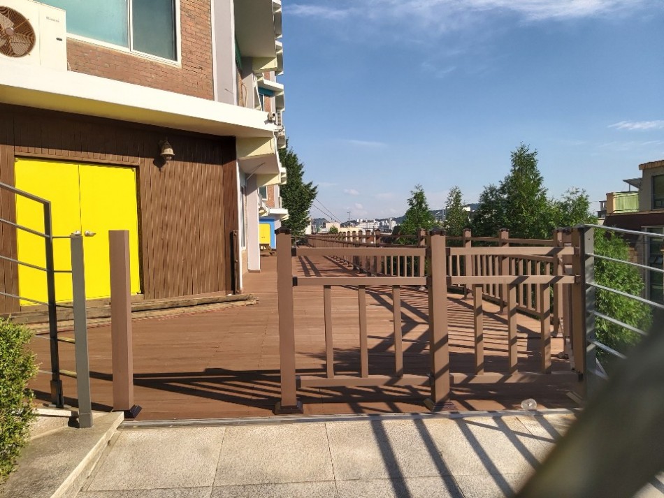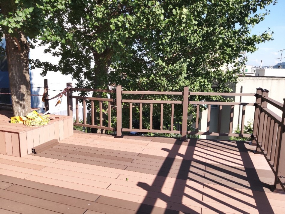 합성목재데크는 어떤 환경이든 나무 같은 디자인이 보이다 보니 어떤 환경이든 잘 어울립니다.