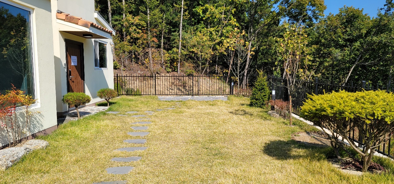 요즘은 합성목재휀스나 스틸휀스를 많이 사용하는데 실제로 집과 잘 어울리는 디자인을 살리면 더 좋을겁니다.
