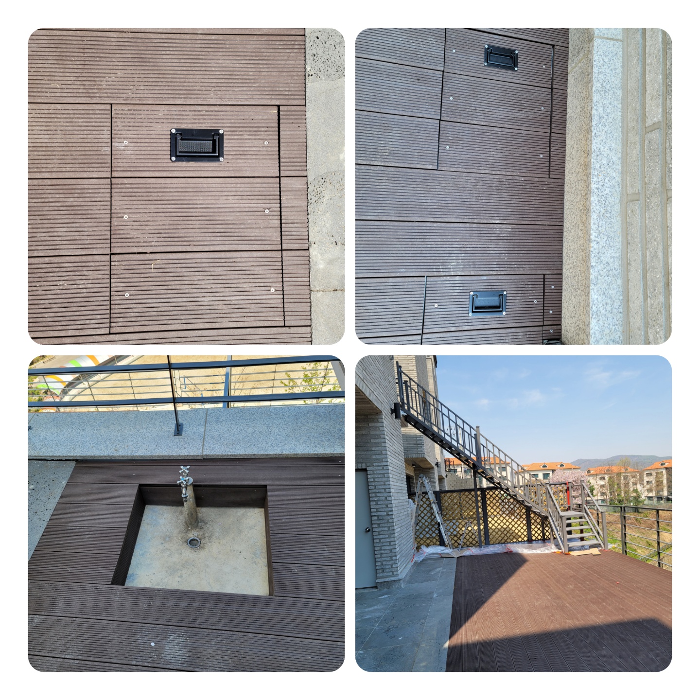 합성목재데크를 시공하다 보면 기본적인 시공은 누구나 다 하겠지만 소소하고 마무리 작업할 때 그 시공 기술의 진가를 볼 수 있습니다.