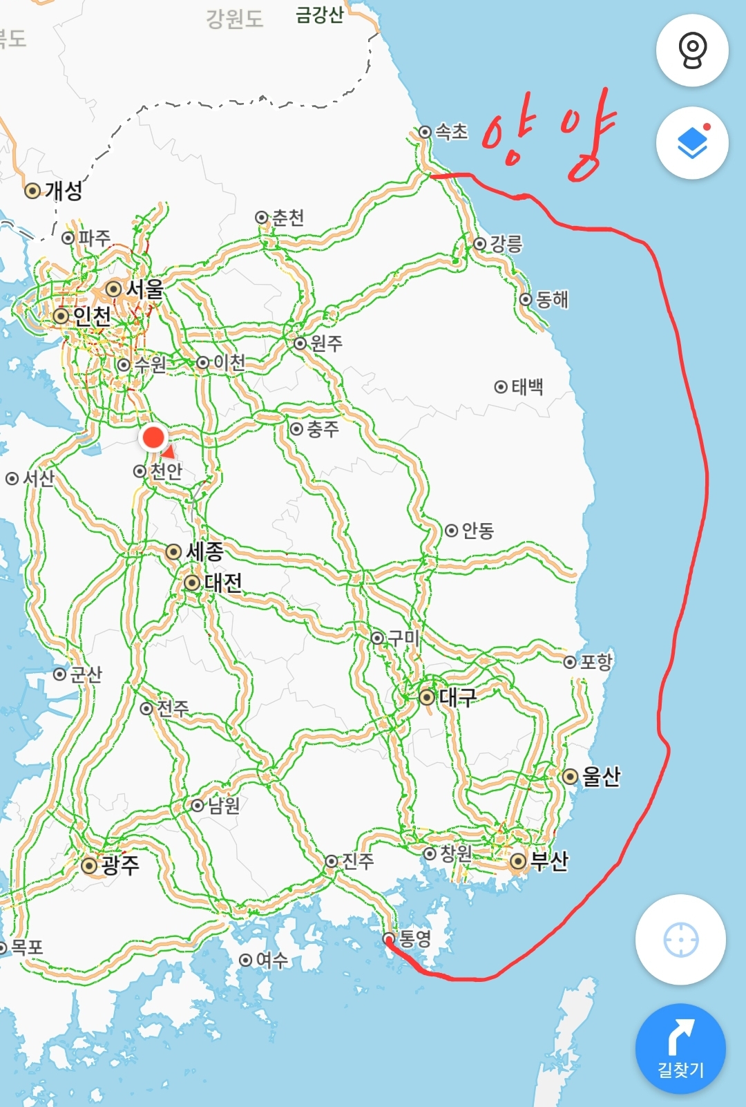 부산에서 양양까지 망망대해를 가는