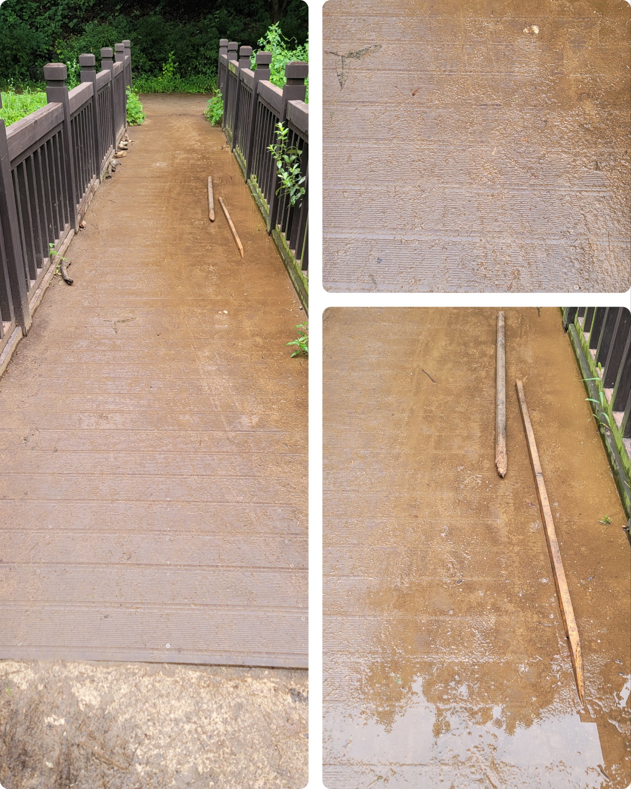 이런 사례를 봤을경우 합성데크는 투수블럭보다 더 잘 빠지는데 시공의 문제로 저 사진처럼