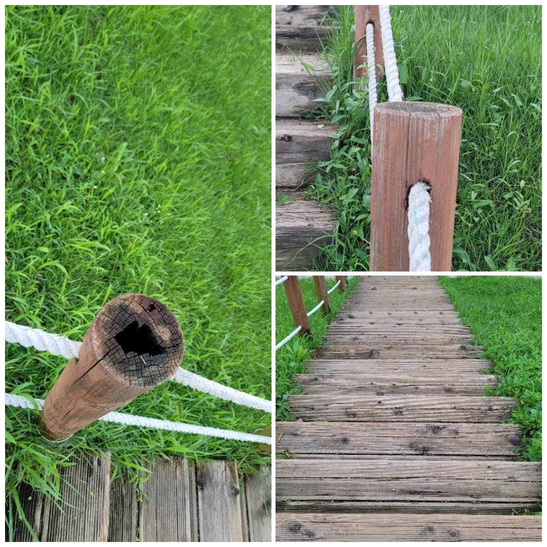 어째 기둥 중간이 다 썩어서 구멍이 났네요. 자세히 보니 설치한지 좀 된 듯 보입니다.