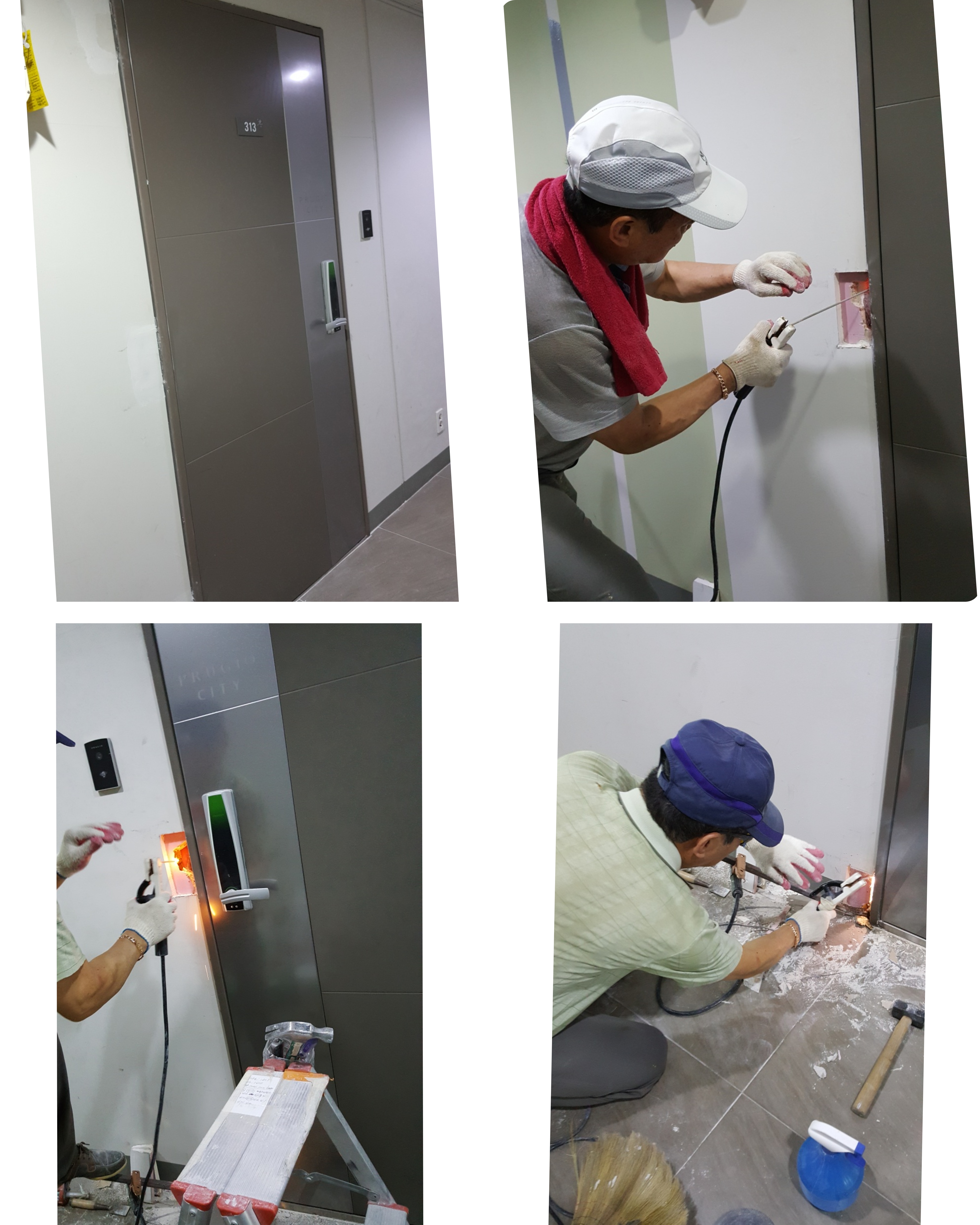 주택, 오피스텔이나 사무실 현관문이 내려앉아서 처지거나 위로 올라간 문