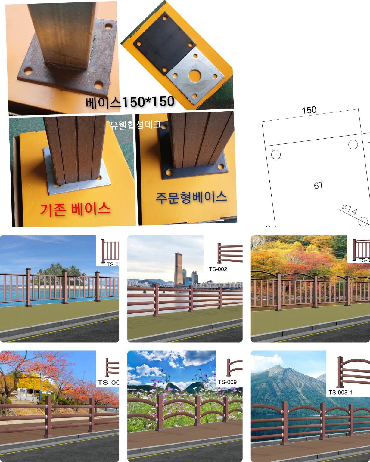 특히 하지작업 시공시 베이스를 고정하고 합성목재 기둥을 씌우는데 이부분 바닥 앵커가 합성목재기둥에 걸려서 살짝 보기싫은 모습이 보이기도 합니다.