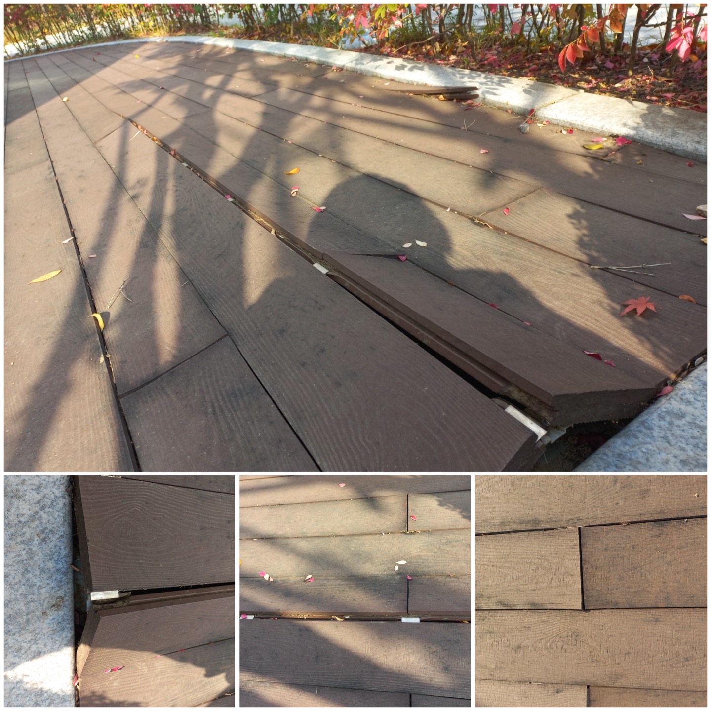 결국 이럴경우는 데크와 데크사이 간격이 너무 좁거나 합성목재 원료의 문제도 생각해볼 필요가 있다고 봅니다.