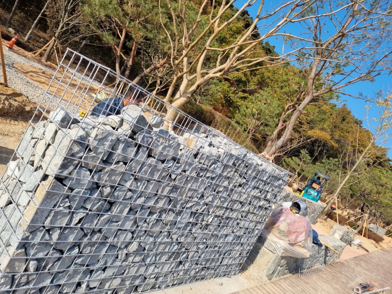아래 사진은 개비온을 통해 시공한 사진을 올려봤습니다.실제 시공하다 보면 주변 환경적인 요소로 인해 공사기간이 지연되는 과정도 발생되고 폭과 넓이가 맞지않아