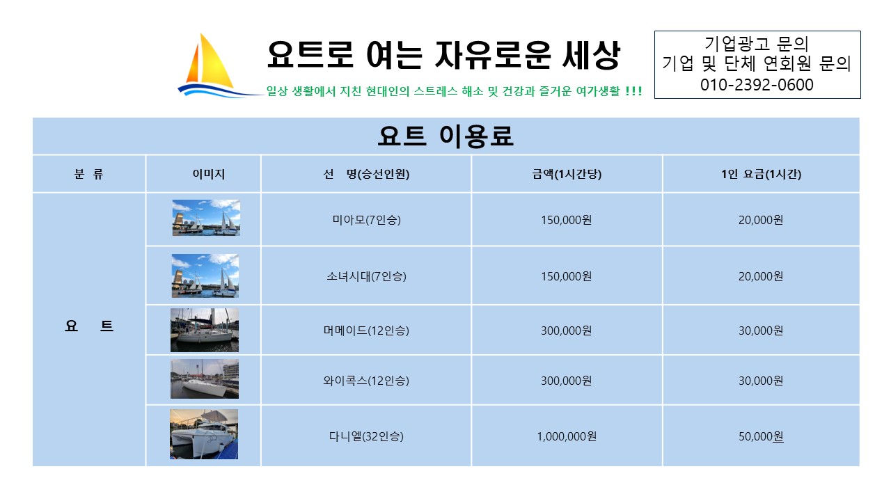 한강 요트투어, 보트투어는 한강요트클럽 세일링 파라다이스에서