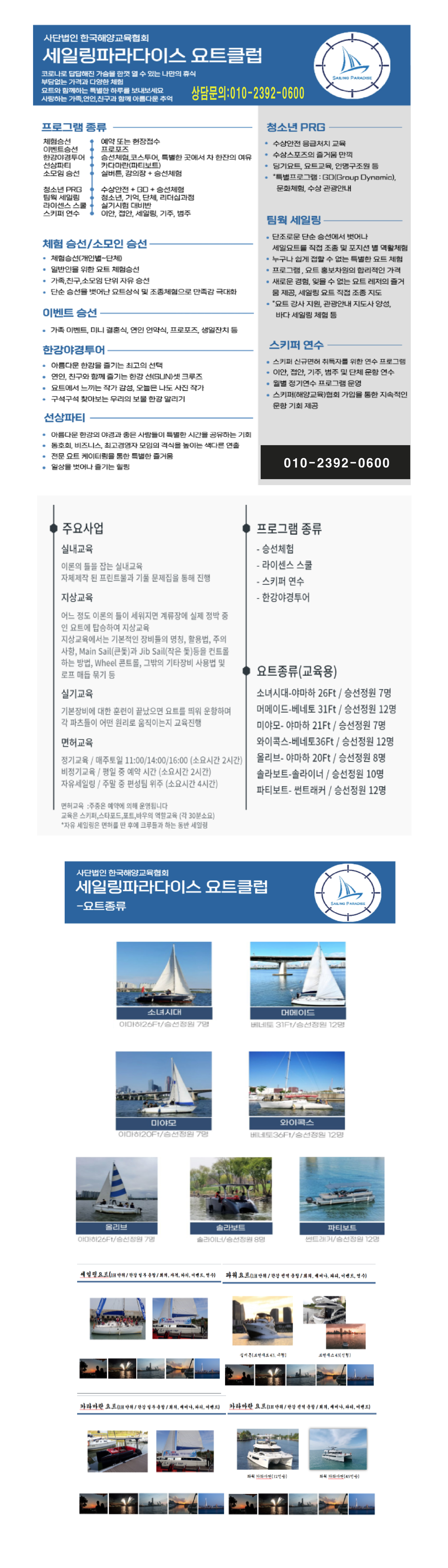 아래 내용은 한강요트클럽 주사업을 간략하게 나열했습니다.