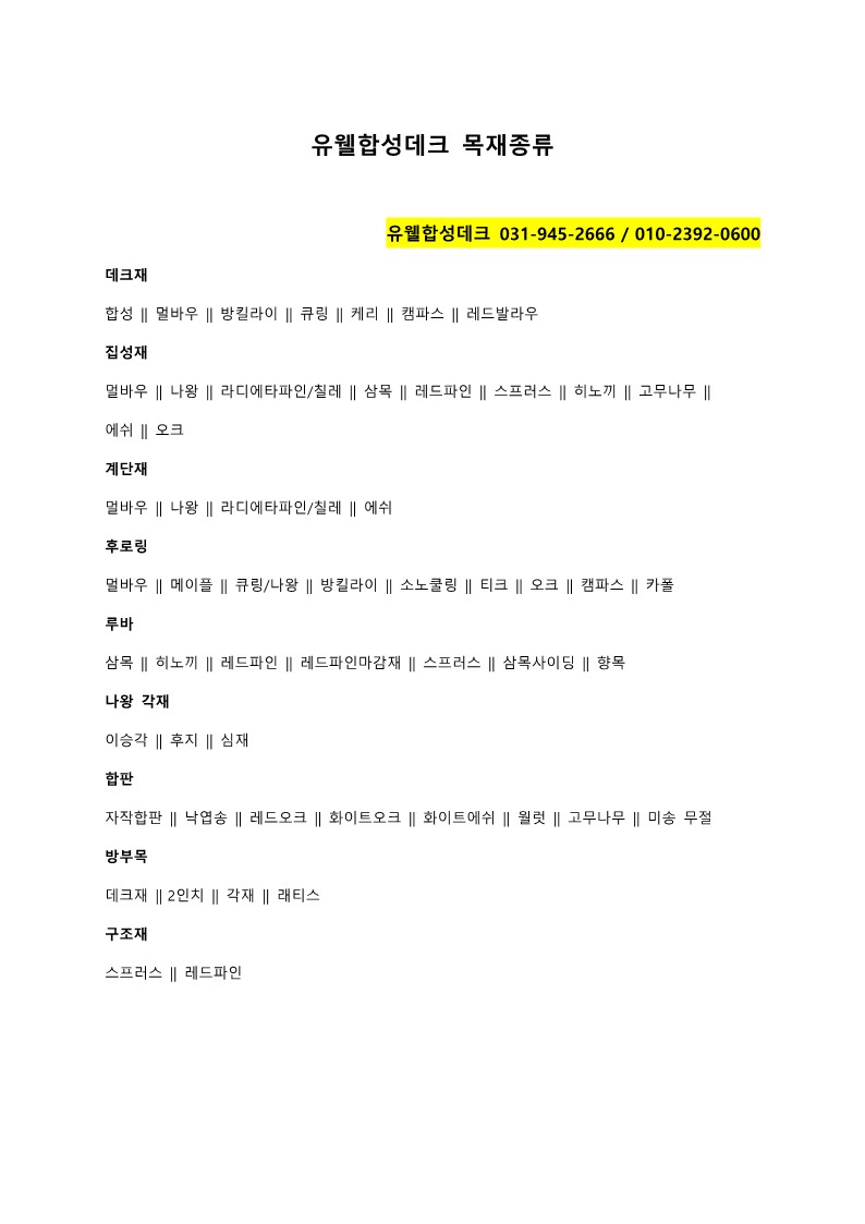 [유웰합성데크]유웰에서 판매중인 목재를 나열해봤습니다. 본문