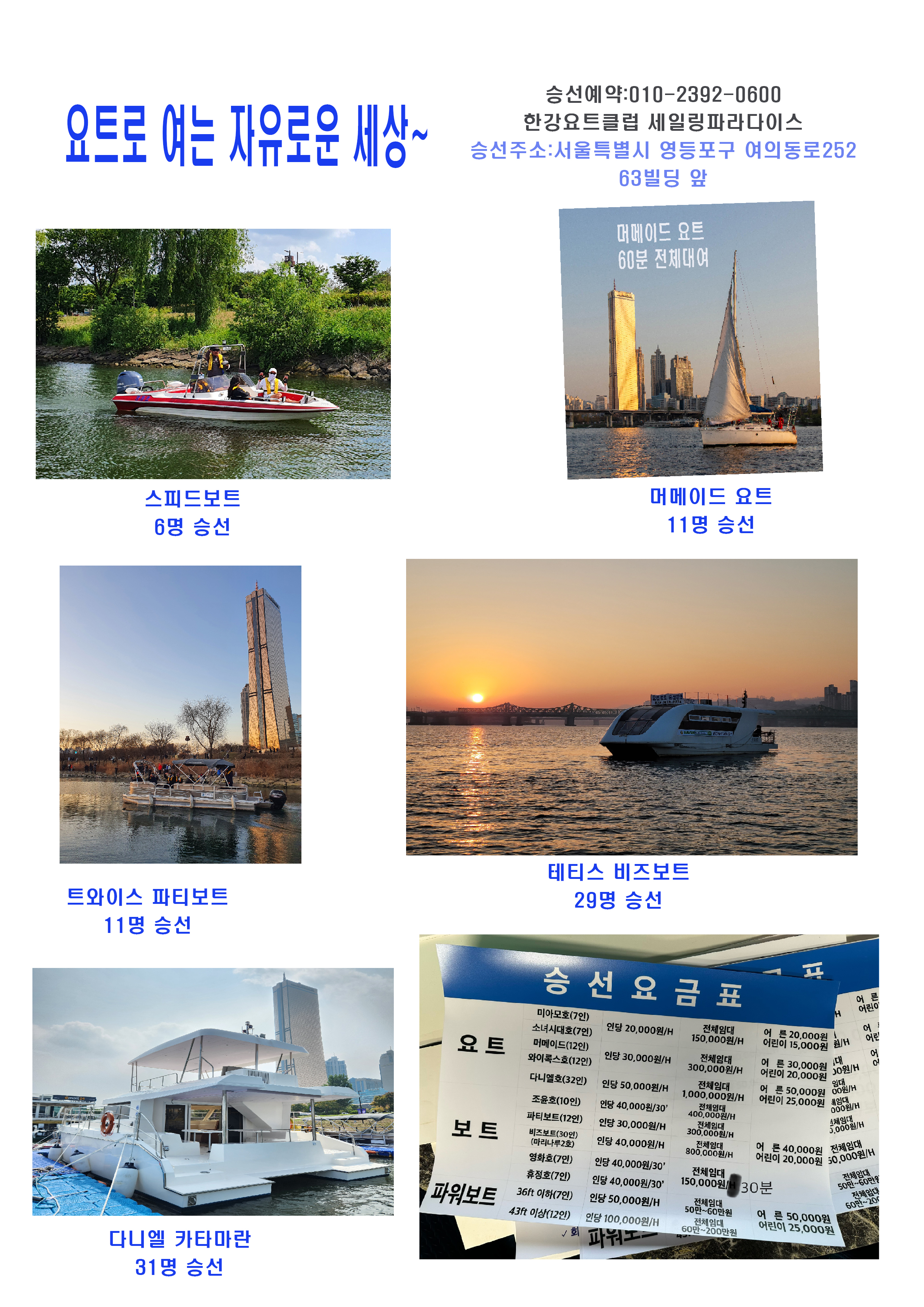 [한강요트클럽]세일링파라다이스요트클럽 연회원 모집합니다 본문