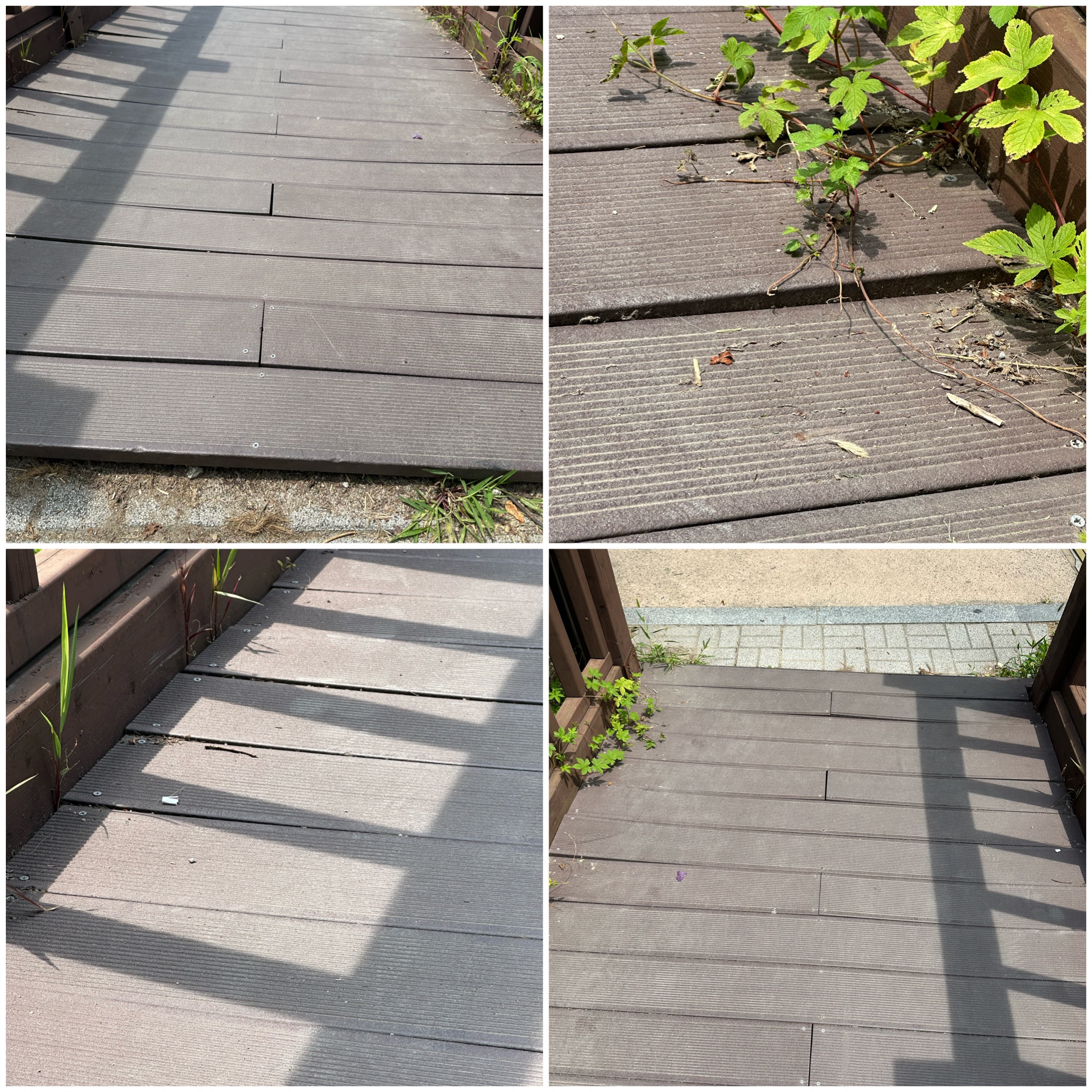 하지만 그렇지 않을 수도 있습니다. 아래 사진은 분명 적합한 원료를 사용했고 시공도 잘했다고 판단하지만 시간이 지날수록 데크가 위로 튀어오르는 경향과 데크가 파도를 치는 경향이 보입니다.