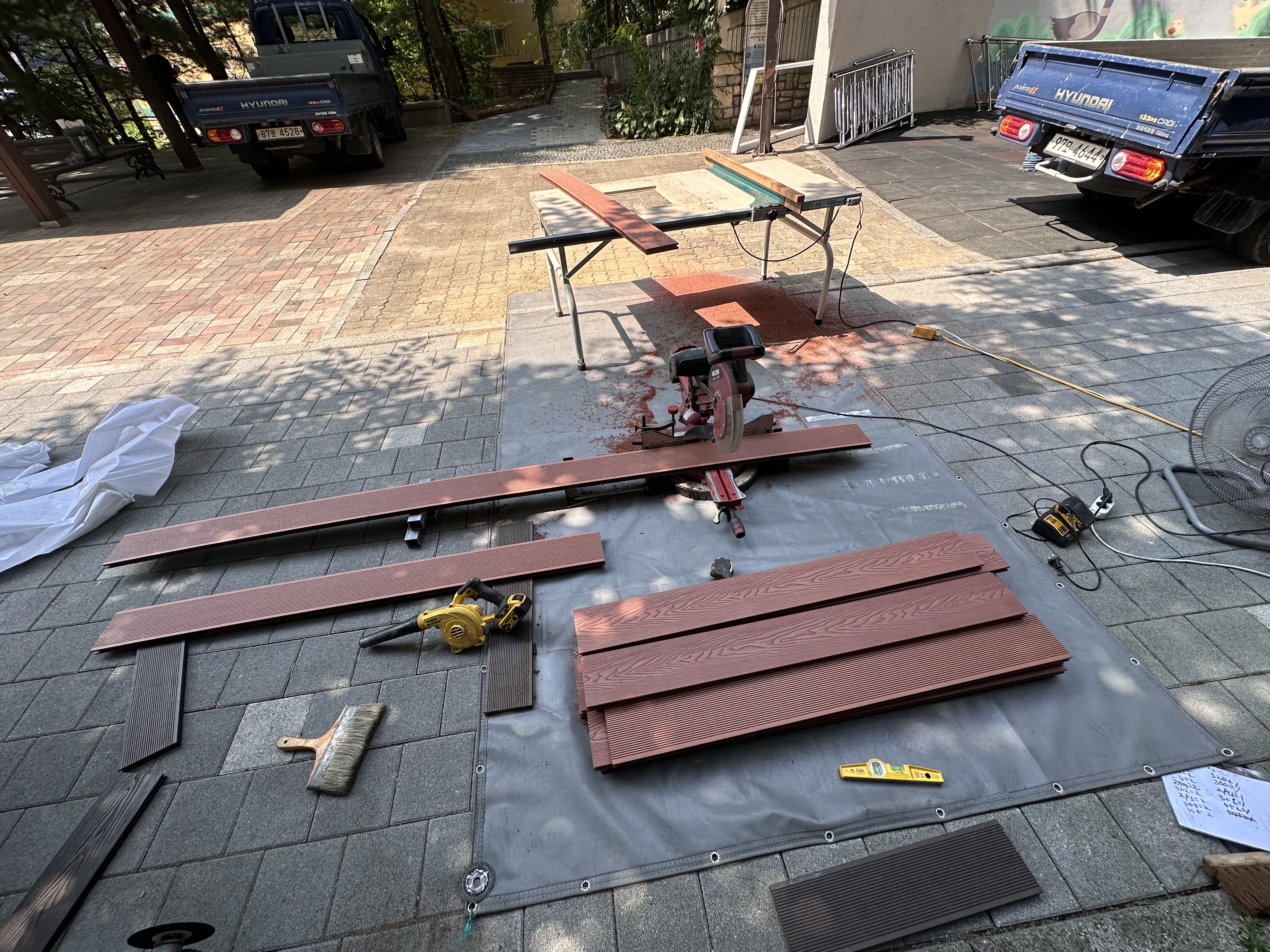 [유웰합성데크] 폭염에 마북동 데크공사 다행히도 그늘에서 시공하네요.