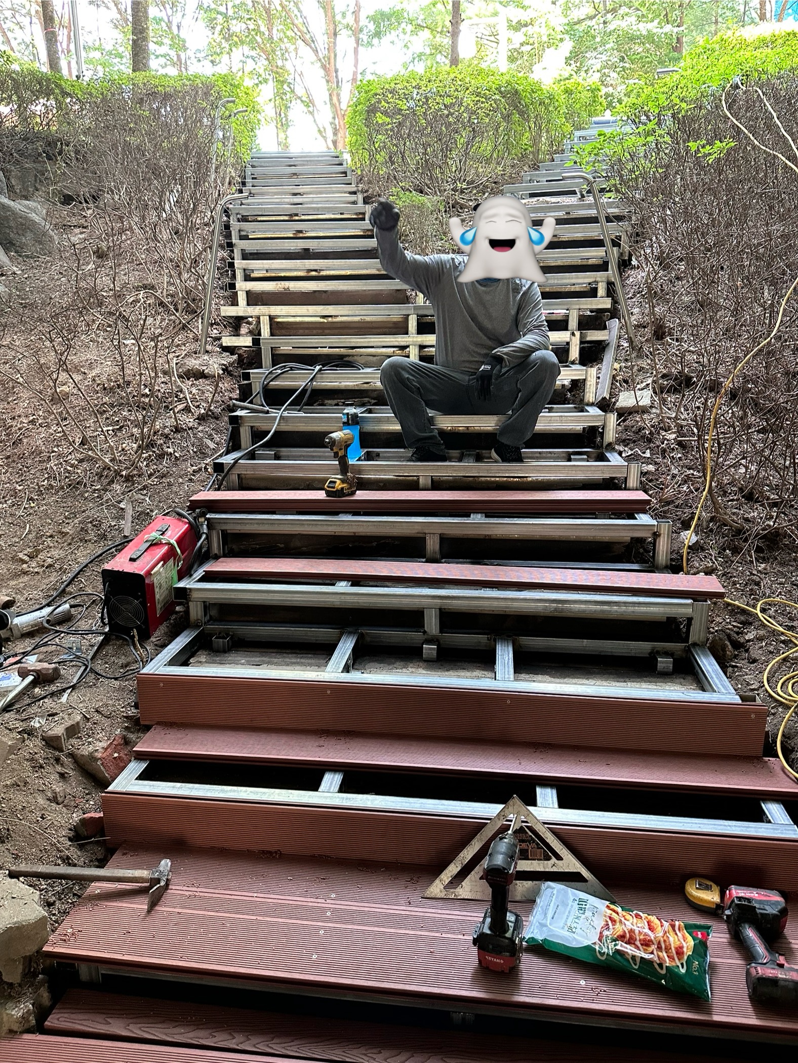 아래 사진은 용인 마북동에 합성목재데크 시공 중 사진입니다.