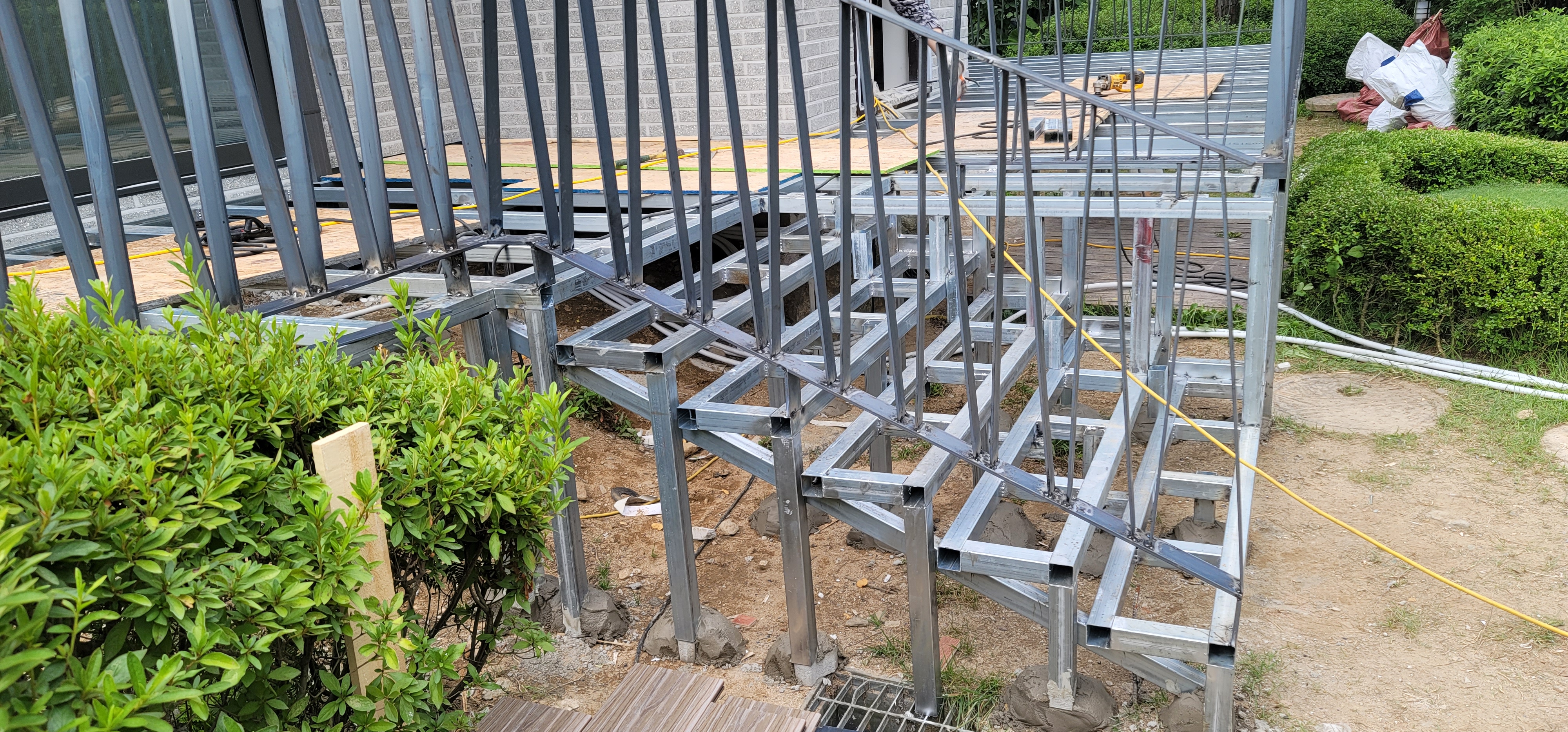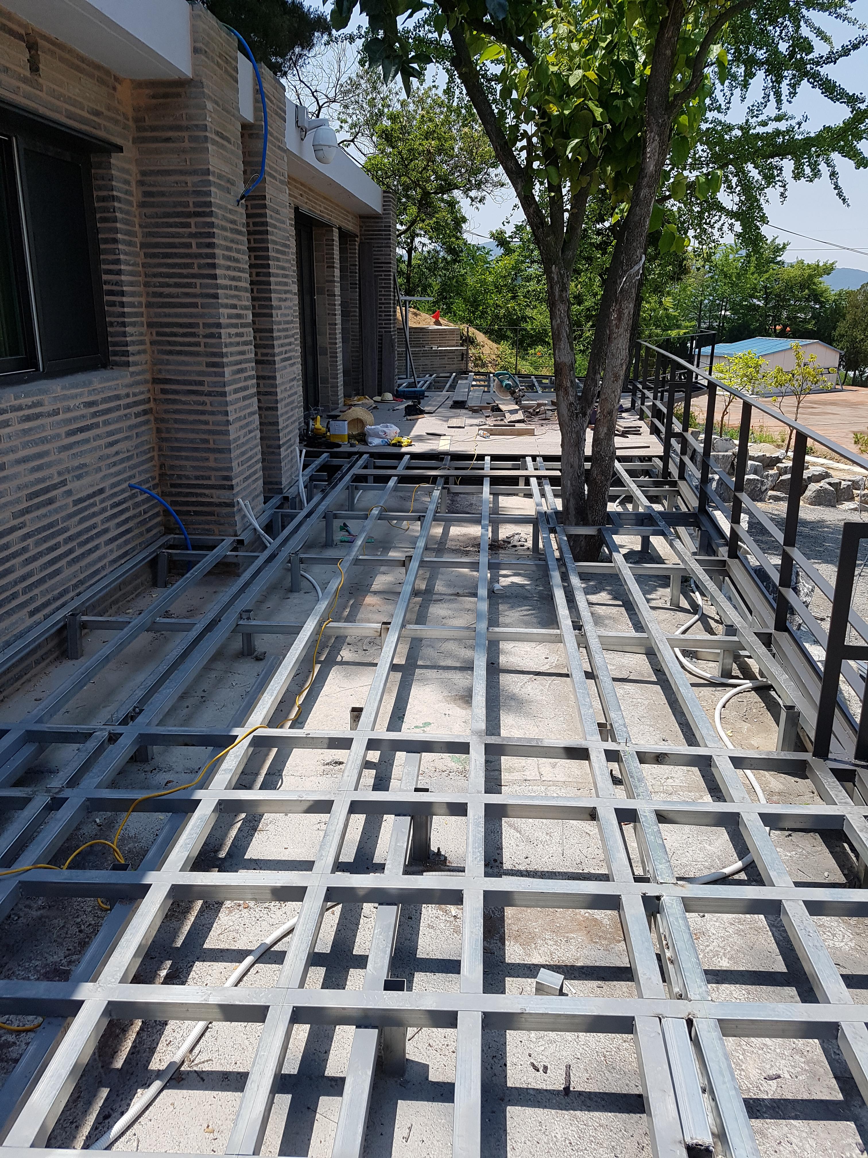 데크 시공하기 위해서는 데크 하지 각관작업이 중요합니다.