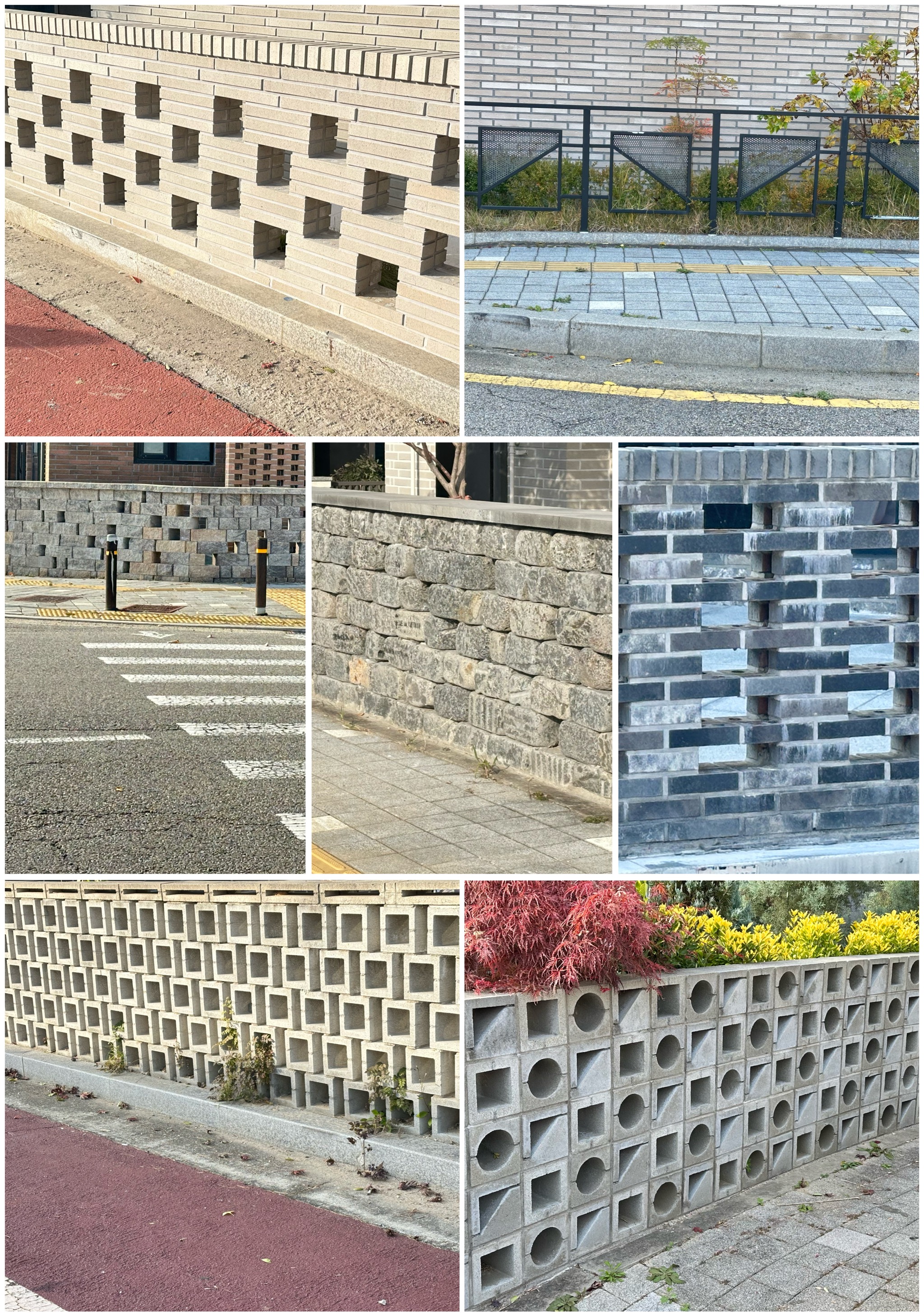 시멘트 블럭으로 가꾼 담장, 스틸로 만든 담장, 디자인 석재를 이용한 담장 등 건축물과 함께 잘 어울리는 분위기를 보고 왔습니다.