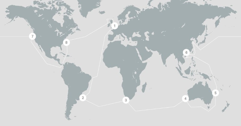 영국 포츠머스에서 시작해 약 11개월 동안 전 세계를 일주하는 이번 대회의 주요 기항 국가와 도시는 다음과 같다.