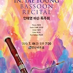 인태영 바순 독주회 IN, TAE YOUNG BASSOON RECITAL Piano / 조윤정 Violin / 안세훈, 문지원 Viola / 이효원 Cello / 최선유 Kontrabass / 박상현 2019. 7. 19(금) 오후 7시 30분 영산아트홀 후 원 : 단국대학교 음악대학, 독일 베를린 국립음대 동문회 입장권 : 전석 10,000원 (학생 50% 할인) # 프로필 아름답고 우아한 음색과 감성 깊은 연주를 전하는 바수니스트 인태영은 단국대학교 음악대학을 수석 입학하여 졸업한 후 독일 베를린 국립음대(Universität der Künste Berlin)에서 바순과 실내악으로 졸업하였다. 다소 늦은 음악적 시작이었지만 재학시절 동아 콩쿨 2위 입상을 시작으로 코리안심포니와의 협연, 단국대학교 음..